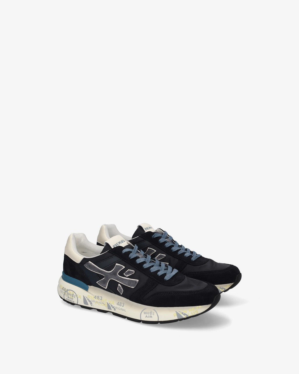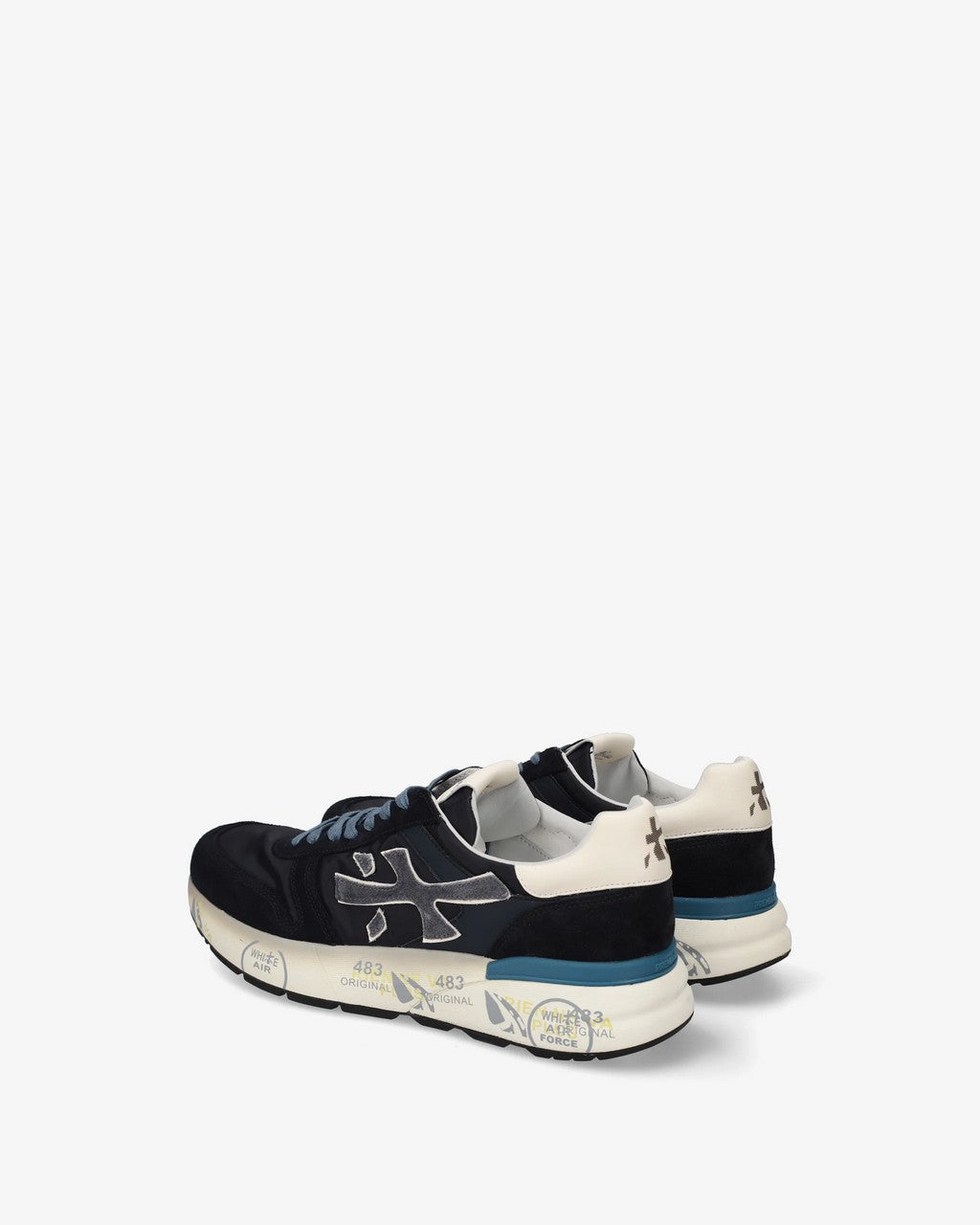 Un mix di materiali e pellami di qualità. La scarpa è realizzata nelle tonalità del blu per uno stile casual. L'iconica silhouette è arrichita dal logo Premiata.